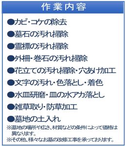 お墓のクリーニングとひとえに言いましても、作業内容は様々あります。