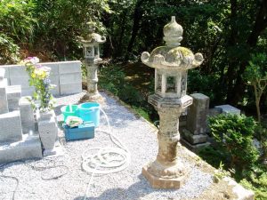 灯篭に長年ついたコケや風雪でついた汚れも綺麗になり、まるで新品のような綺麗さです