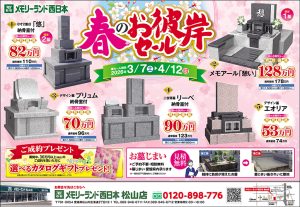 今年も松山店は「春彼岸セール」を3/7から4/12まで開催中です。